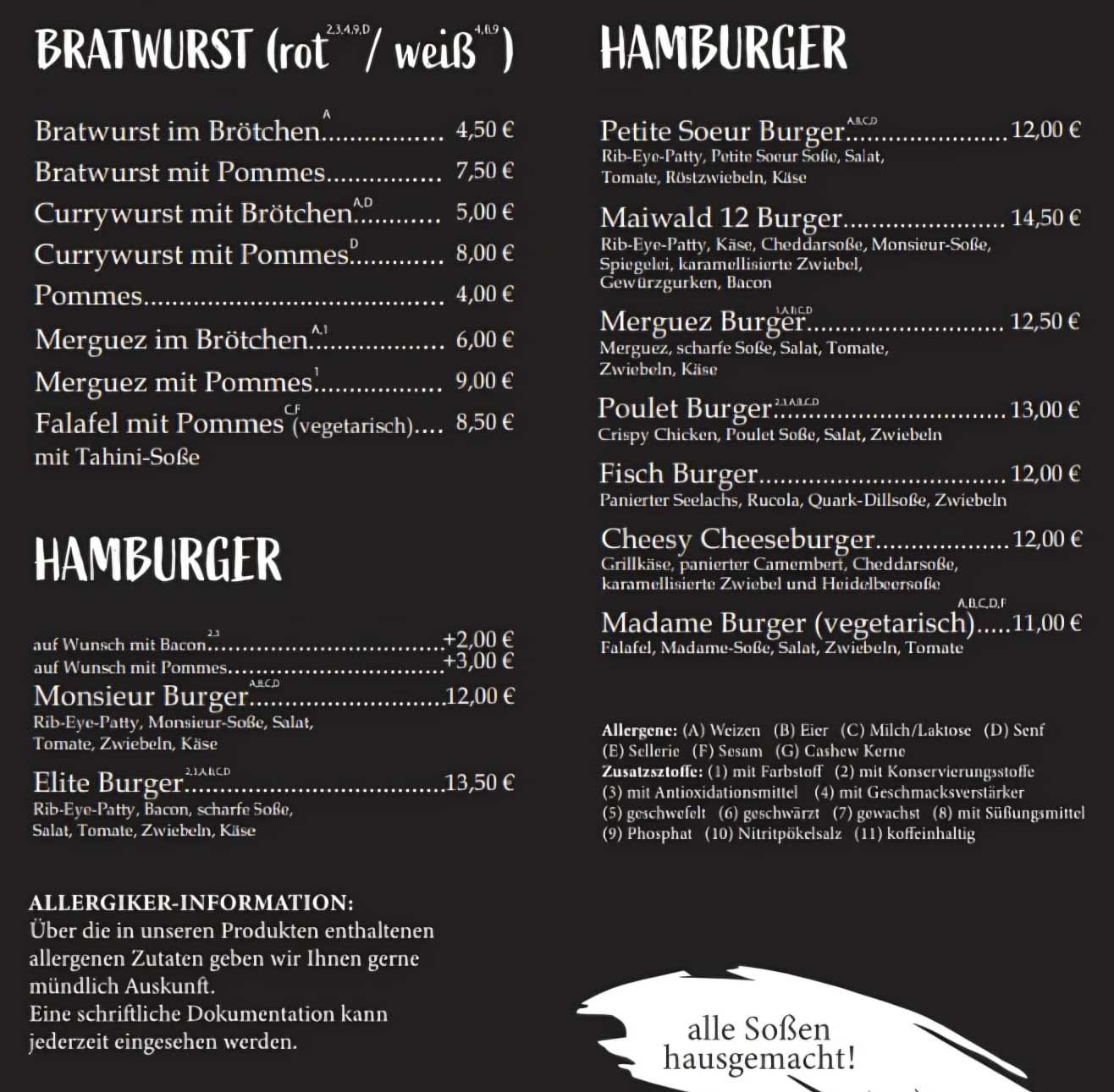 Lassen Sie sich bei Madame Curry von saftigen Rib-Eye-Burgern, der klassischen Currywurst oder der würzigen Merguez verführen. Auch Liebhaber der vegetarischen und veganen Küche kommen auf Ihre Kosten. Alle Soßen sind hausgemacht.