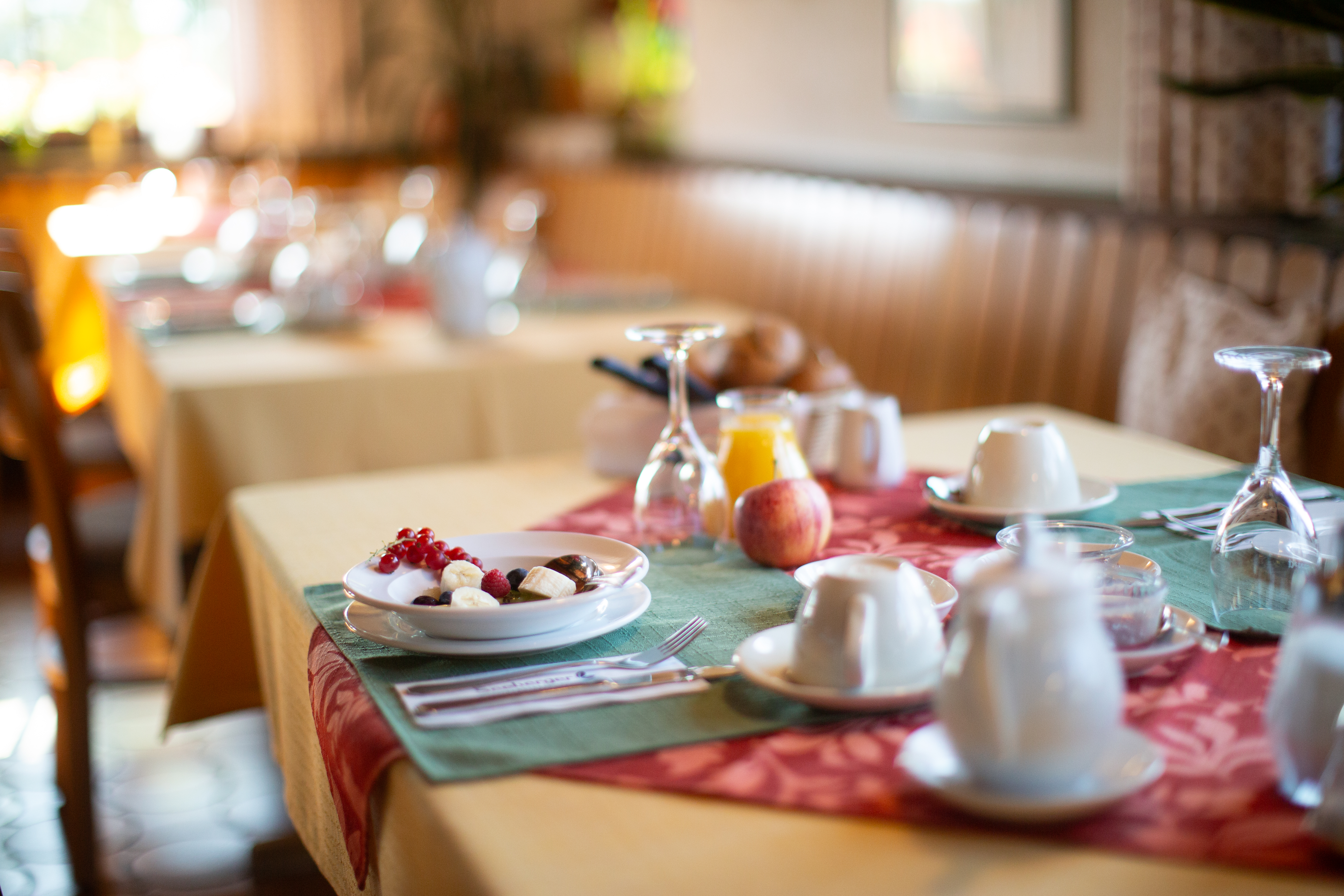Lassen Sie sich von uns mit unserem reichhaltigen, am Tisch servierten Frühstück in unserer gemütlichen Gaststube verwöhnen. Kaffee, Tee, Cappuccino, Espresso oder heiße Schokolade stehen zur Auswahl. Auf Wunsch bereiten wir für Sie frisch Rühreier mit und ohne Speck oder gekochte Eier zu. Wer auf die gesunde Portion Obst nicht verzichten möchte, bekommt sehr gerne noch einen frischen Obstsalat serviert.
