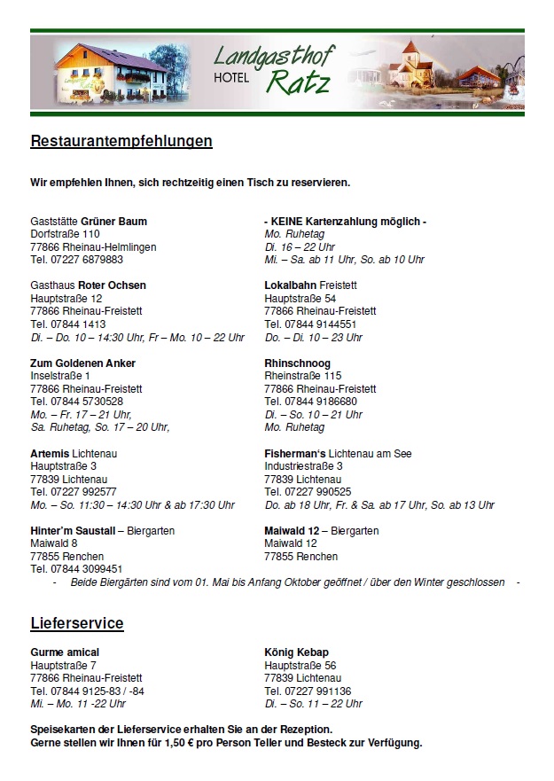 Für das Abendessen empfehlen wir Ihnen gute Gastronomien in der Nähe.
